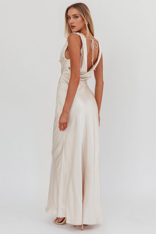 Gorgeous satin long backless scarf collar with hidden side zipper bridesmaid dress