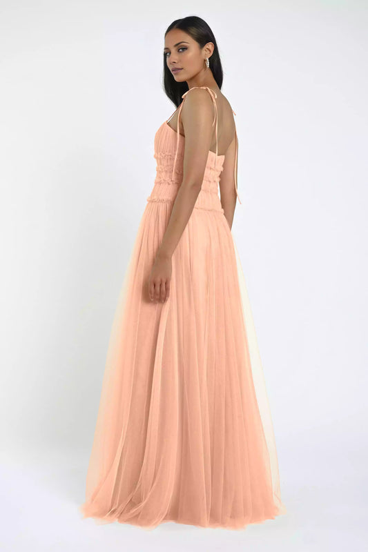 Playful luxury chiffon backless collar with adjustable thin shoulder straps and layered ruffled edges Bridesmaid Dresses