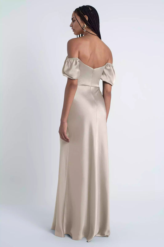 Elegant satin straight tube off shoulder collar with tight silhouette and a back zipper Bridesmaid Dresses