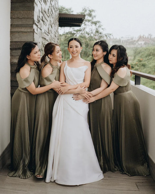 Details hide ingenuity, with elements such as lace, ruffle edges, and fine shimmer adding a delicate touch. The fabric is skin friendly and comfortable, allowing you to accompany the bride freely throughout the entire process. Choosing a well fitting dress can not only make the bride more dazzling, but also make oneself elegant and outstanding at the wedding.
