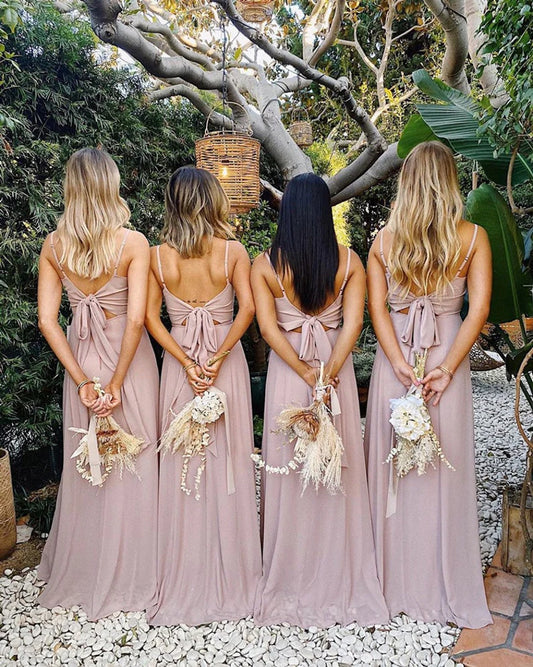 Gorgeous sheath pink floor length spaghetti strap bridesmaid costume