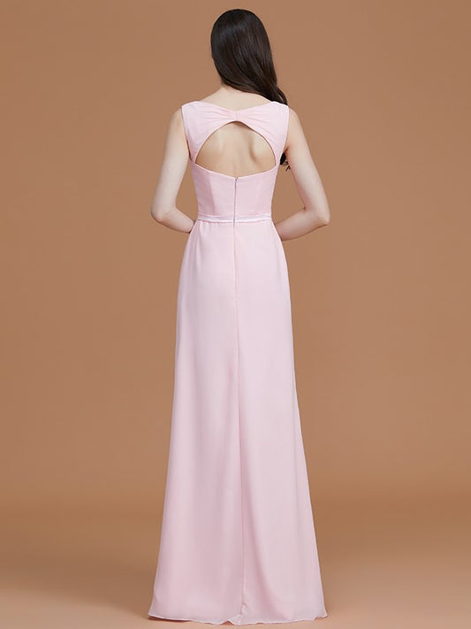 Princess V-neck sleeveless shoulder strap and ground pleated chiffon bridesmaid dress
