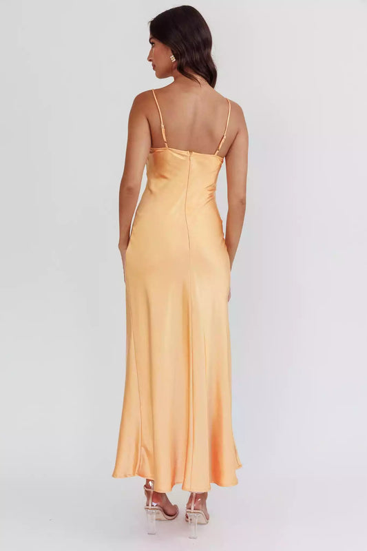Gorgeous satin long hanging back without lining, invisible side zipper Bridesmaid Dresses
