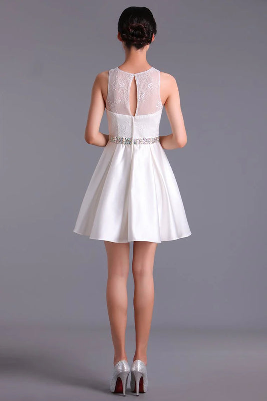 Sweet Beaded Tight Back to School Ball Party Dress A-Line sheer short/mini