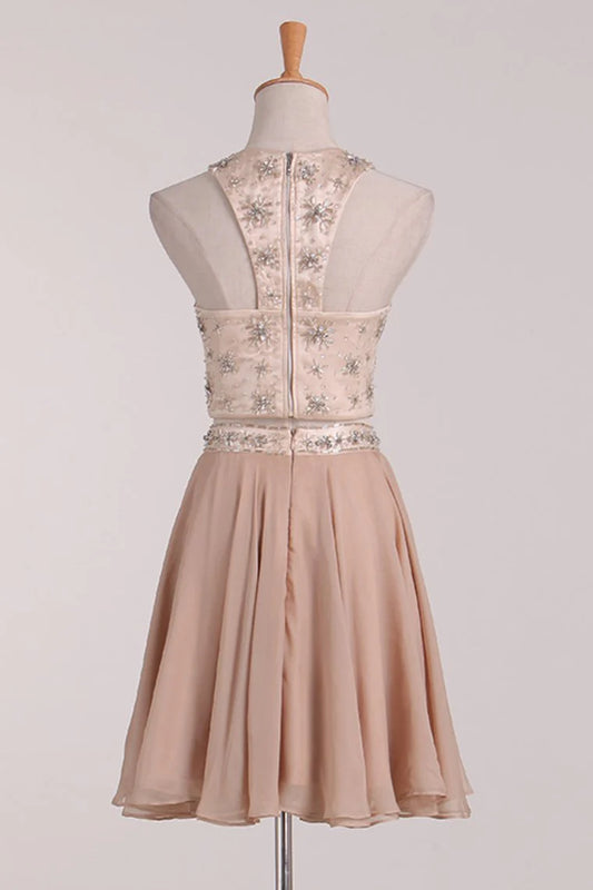 Scoop Homecoming Party Dress Two Piece Set A-Line Chiffon Beads