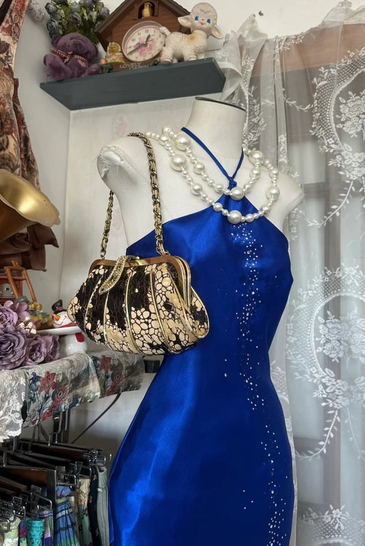 Halter Neck Rhinestone Embellished Satin Mermaid Evening Dress with Back Tie Closure