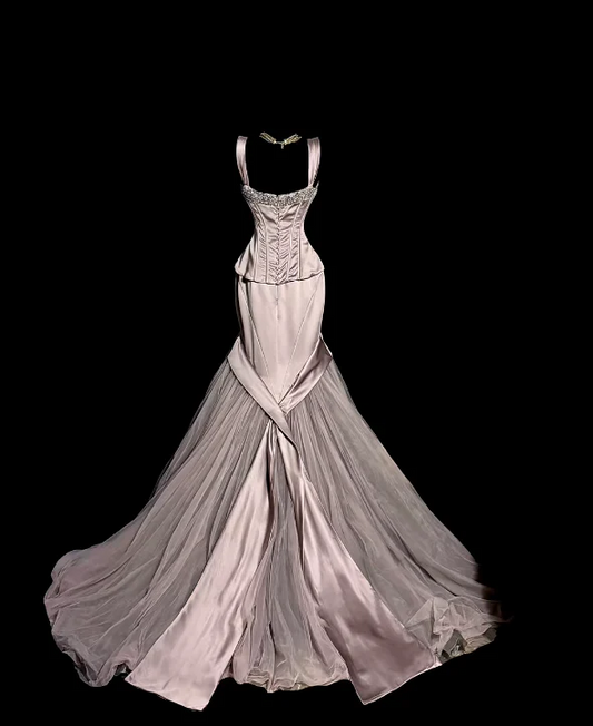 Sweetheart Neck Corset Beaded Satin Tulle Mermaid Train Evening Dresses