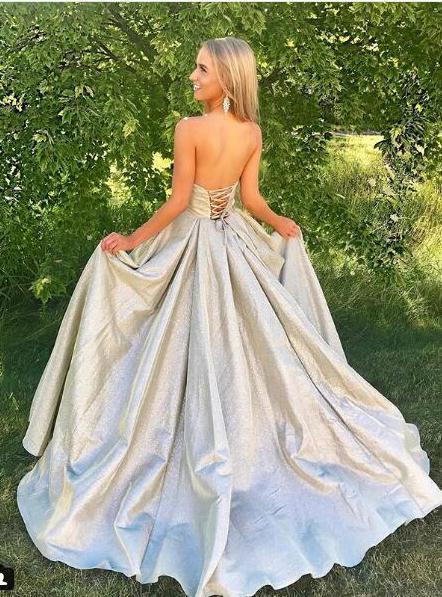 A-line V-neck pink blue V-strap beaded ball evening dress