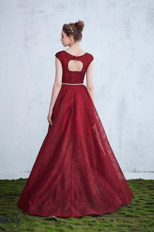 Lace sexy backless and floor length elegant evening gown