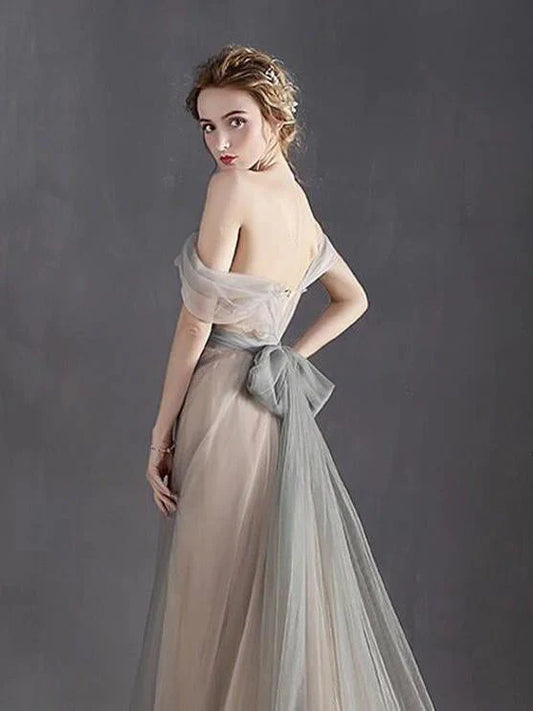 A-line sexy off the shoulder simple silver sweetheart sheer backless dress