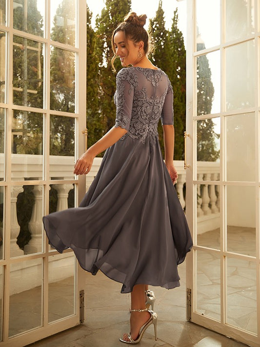 A-line Elegant Princess Wind and Snow Spinning Applique Half Sleeves Asymmetric Dress