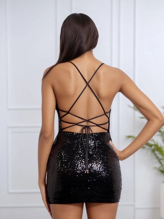 OKBBN elegant sequin scarf mini tight fit slim shoulder strap Homecoming Dresses
