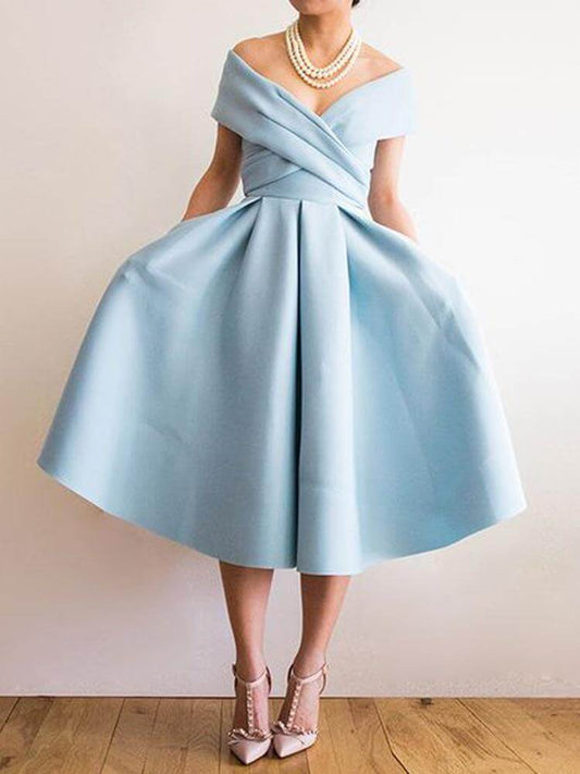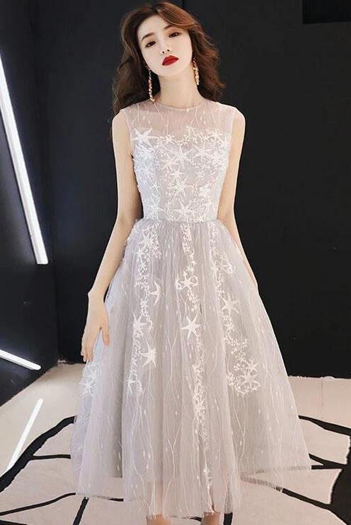Simple A-line Sweetheart Back to School Party Prom Dress sheer tea length