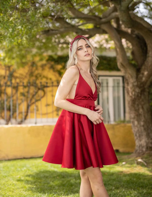 Short Mini Cocktail Dress Red Back to School Party Festival Cute Dress