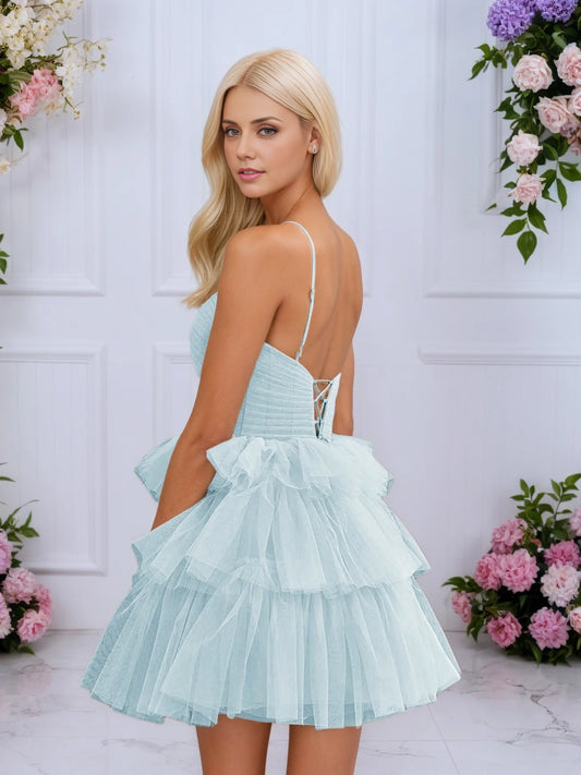 OKBBN A-line off shoulder sleeveless sheer multi-layer Homecoming Dresses