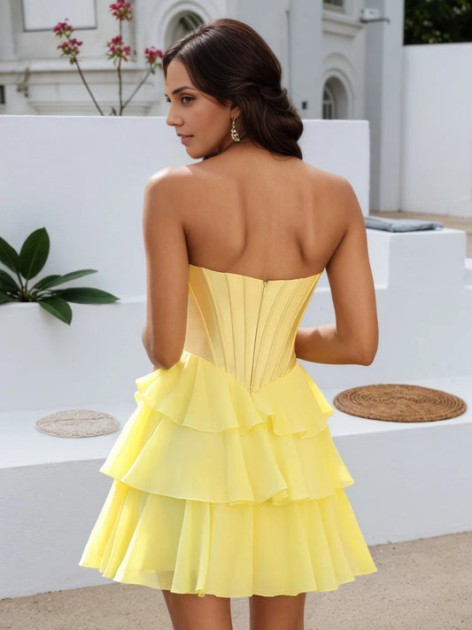 OKBBN Cute A-Shape Sweetheart Off Shoulder Multi Layer Mini Homecoming Dresses