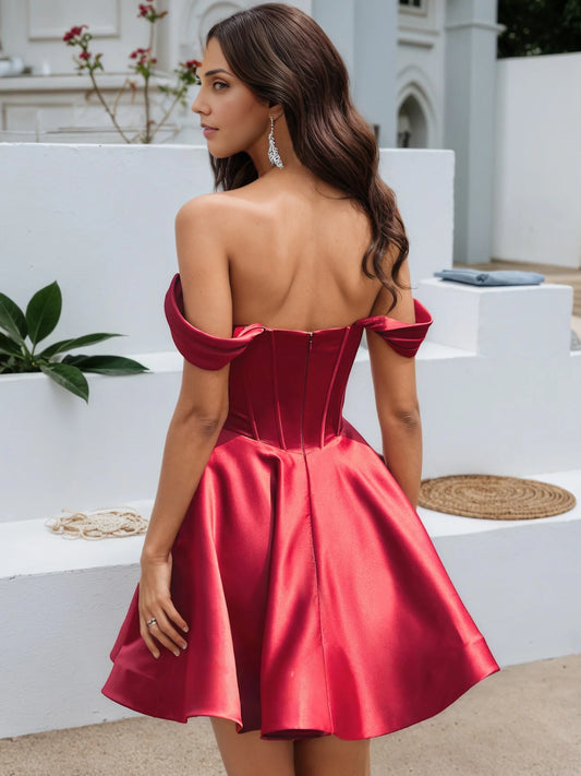 OKBBN Elegant Off Shoulder Highlighting Neck and Shoulder Lines, Shrinking Waist Mini Homecoming Dresses