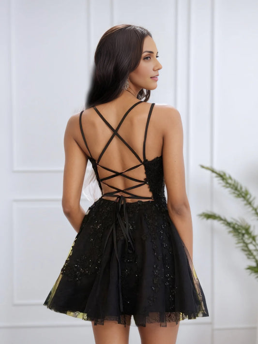 OKBBN's stunning A-shaped thin shoulder strap decal short Homecoming Dresses