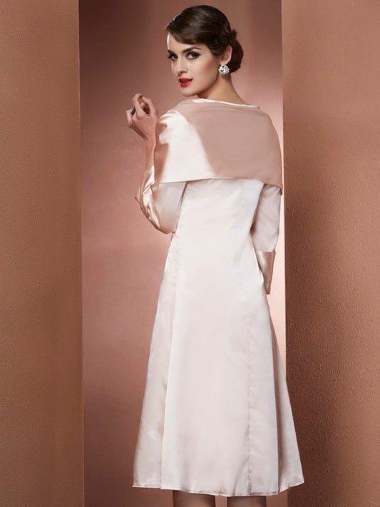 Columnar satin decal Scoop medium long sleeved knee length bridal gown