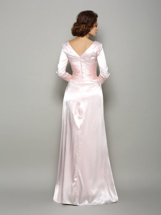 Sheath cylindrical V-neck short sleeved ruffled taffeta long bridal gown