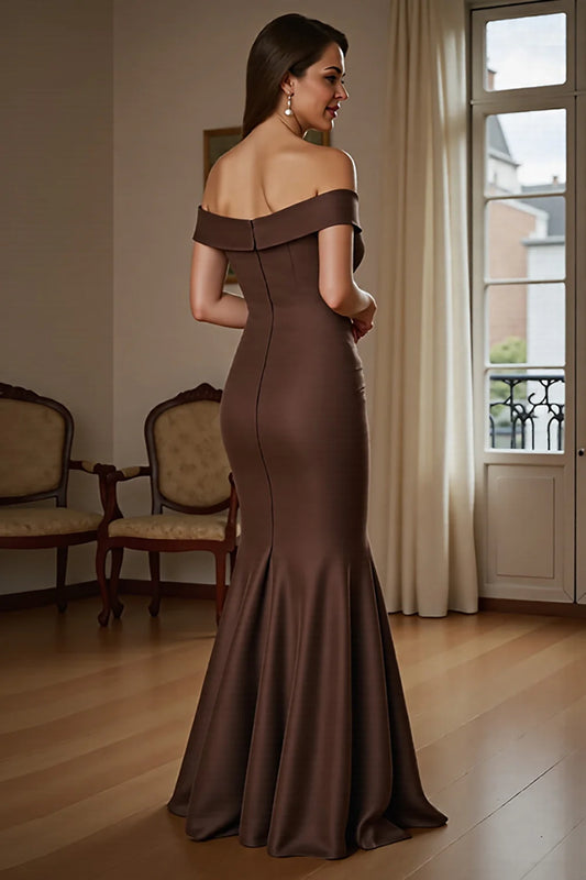 Charming off shoulder mermaid decal slimming highlights charming curves, bride and mother dress