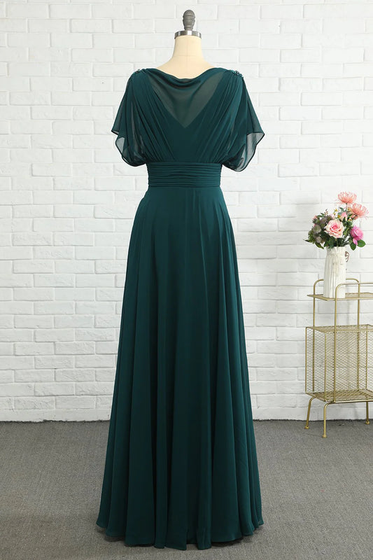 OKBBN Chiffon Short Sleeve Waist Bridal Mother Dress
