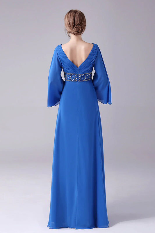 OKBBN A-line chiffon V-neck long sleeved bridal mother gown