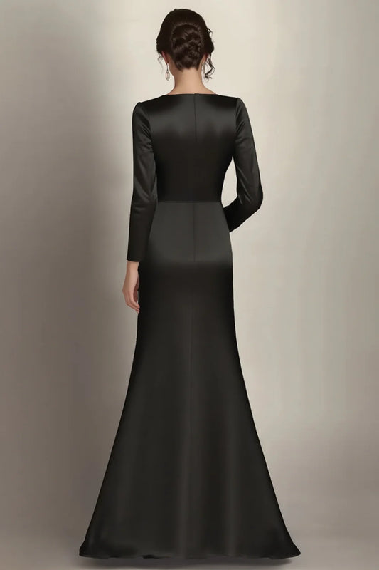 OKBBN mermaid long sleeved satin pleated long dress for brides and mothers