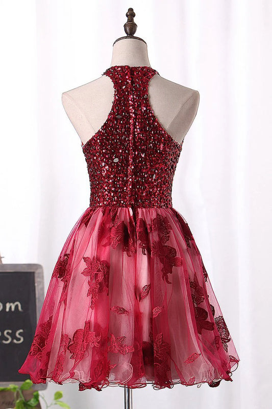 Hot selling sweet dress Scoop A-line beaded tight sheer short mini style