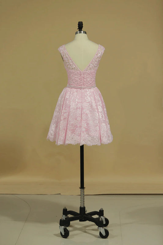 Simple and beautiful lace V-neck two-piece A-line long ball dress