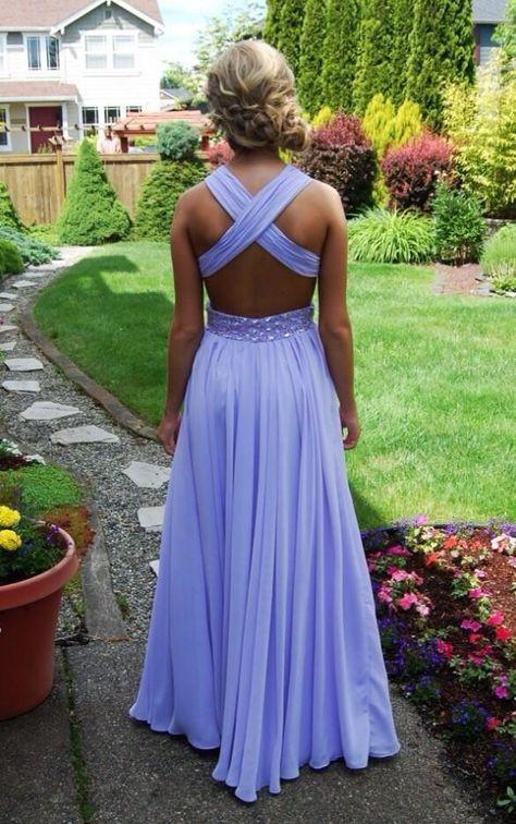 Italian spaghetti strap purple gorgeous A-line chiffon long backless ball dress