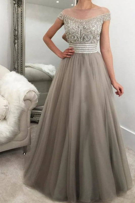 A-line elegant dress with beaded and trimmed strapless chiffon