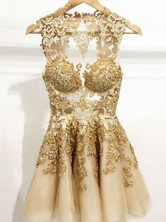 A-line Princess Style Elegant Lace Applique Fine Shoulder Strap Sleeveless Short Mini Homecoming Dress