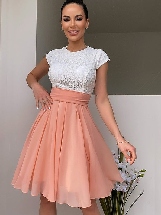 A-line Sweet Princess Jewelry Sleeveless Lace Mini Chiffon Back to School Ball Dress