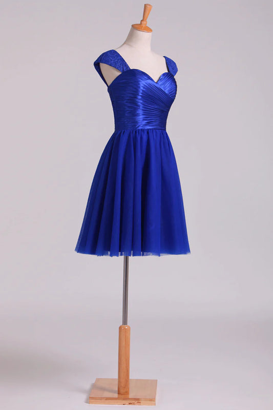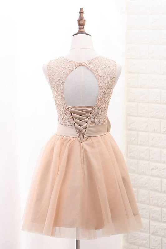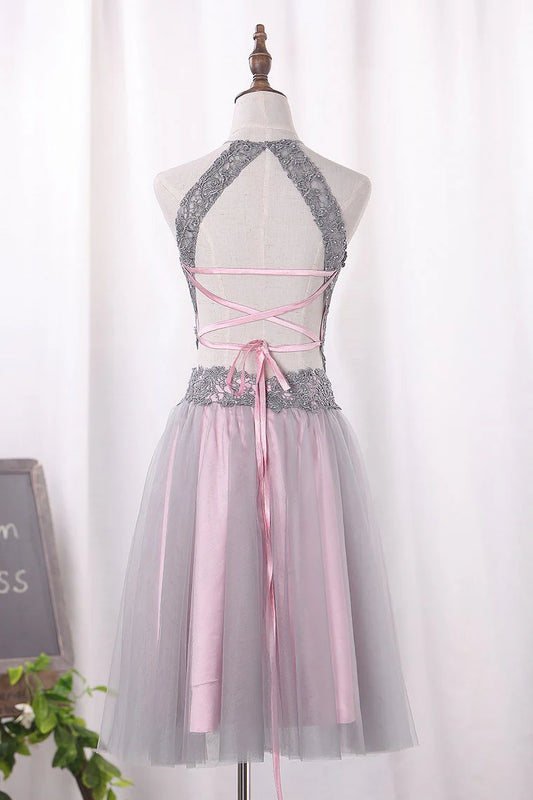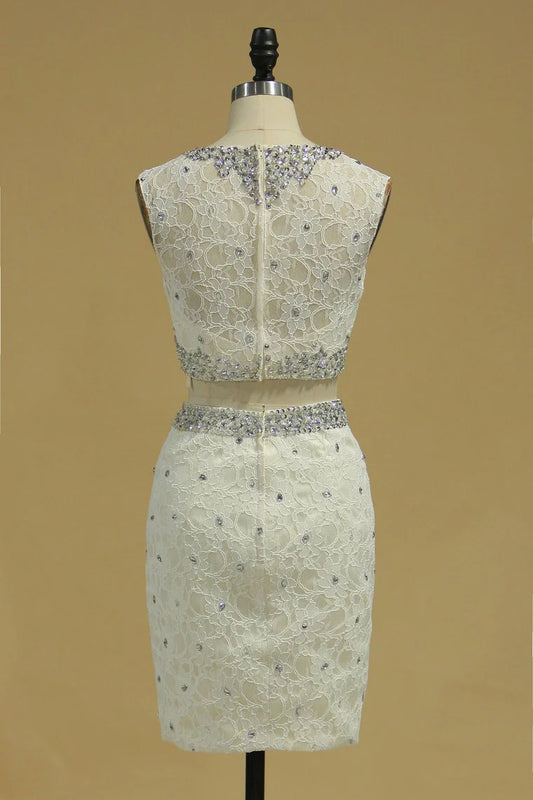 Two piece dress set with A-line sheer short mini lace tight fitting corset