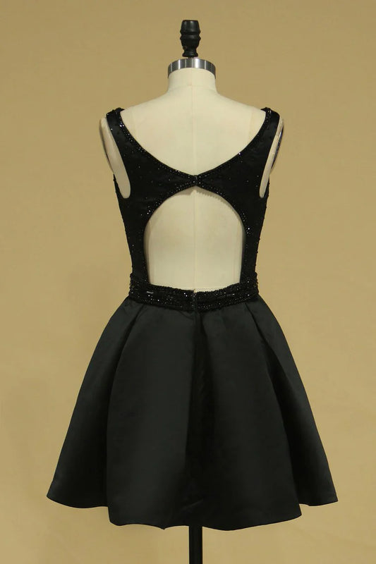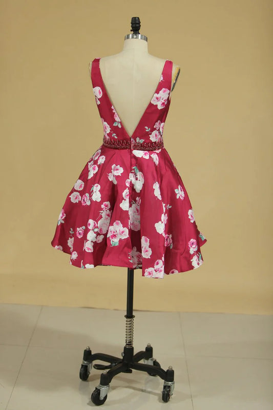 Classic Noble Dress V-neck A-line Short Mini Satin Flower