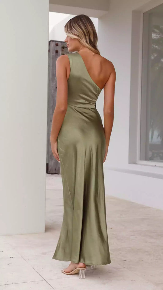 Elegant single shoulder waist cut with high side slits and hidden side zippers, combining comfort and exquisite Prom Dresses