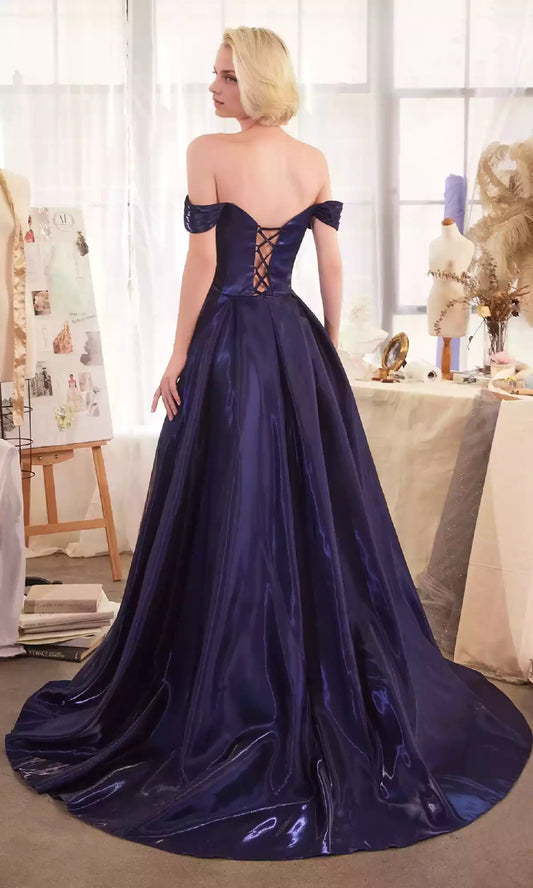 Bold and avant-garde off shoulder long A-line organza heart-shaped neckline with wide shoulder straps, full of drape Prom Dresses