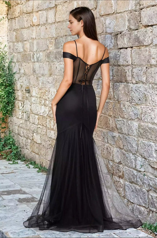 Charming off shoulder satin long ruffled cuffs, slim fit fish tail, showcasing elegant temperament Prom Dresses