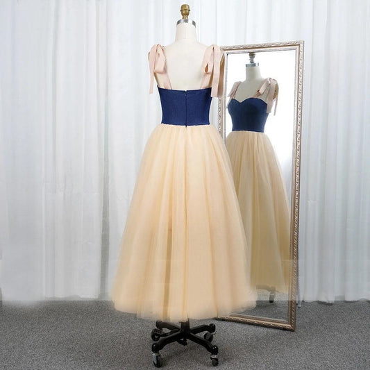 Simple and Sweet Italian Noodle Dress with Thin Gauze Tea Long Evening Dress