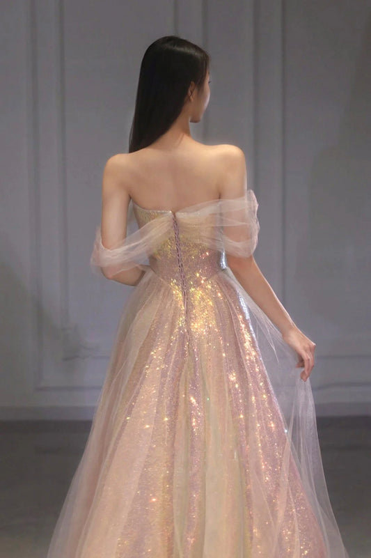 Beautiful off shoulder spaghetti strap elegant long ball dress