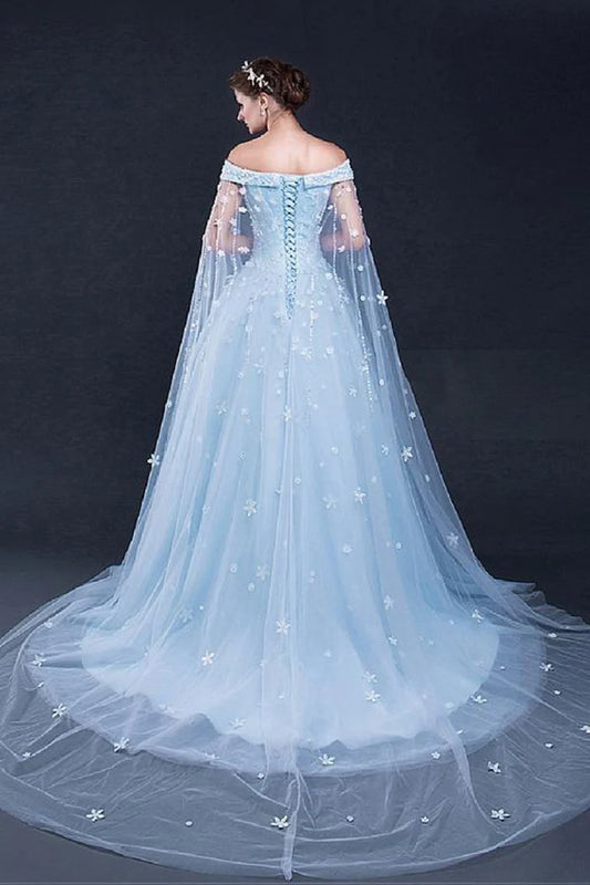 Light Sky Blue Ball Dress Sweeping Brushed Veil Ball Evening Dress