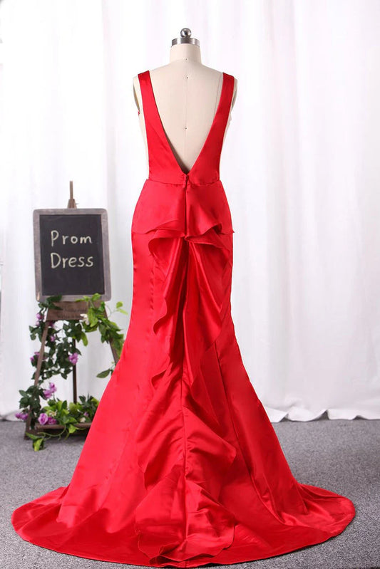 Elegant mermaid ball dress with V-neck and backless satin finish