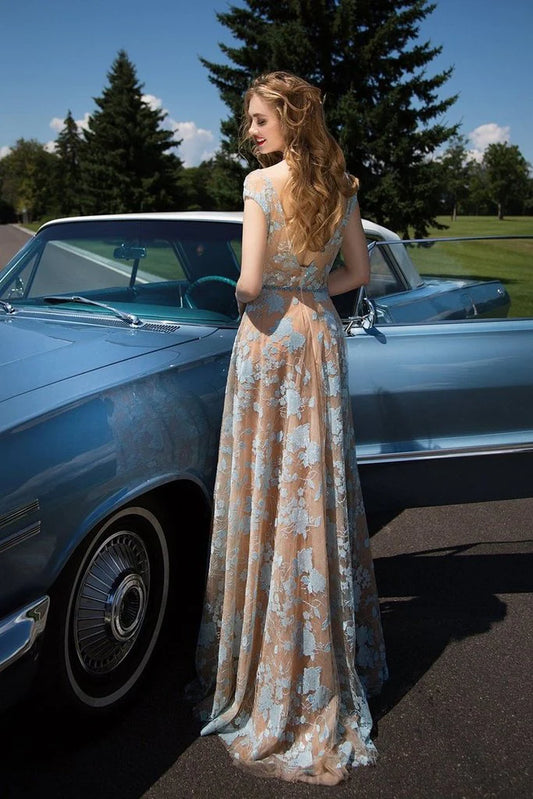 Charming A-line V-neck beaded sheer ball dress with embellishments and floor long skirt