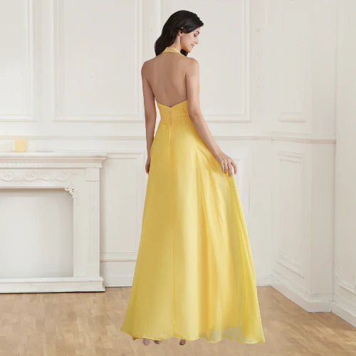 Sexy backless hanging neck evening dress with A-line sticker chiffon dress