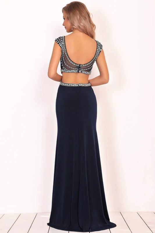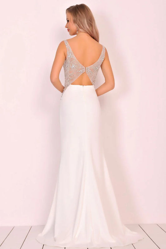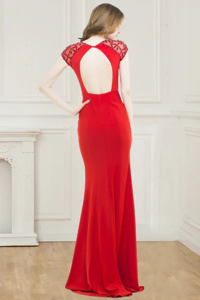 Elegant Hollow out Evening Dress Mermaid Beaded Sweeping Skirt