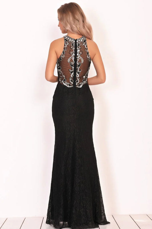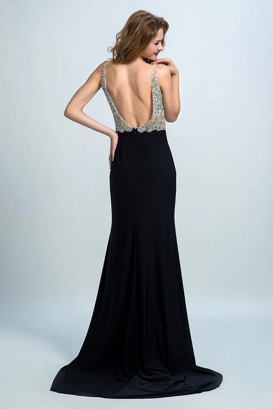 Black formal dress with full bead embellishments tight fitting corset backless chiffon sweeping dressBlack formal dress with full bead embellishments tight fitting corset backless chiffon sweeping dress