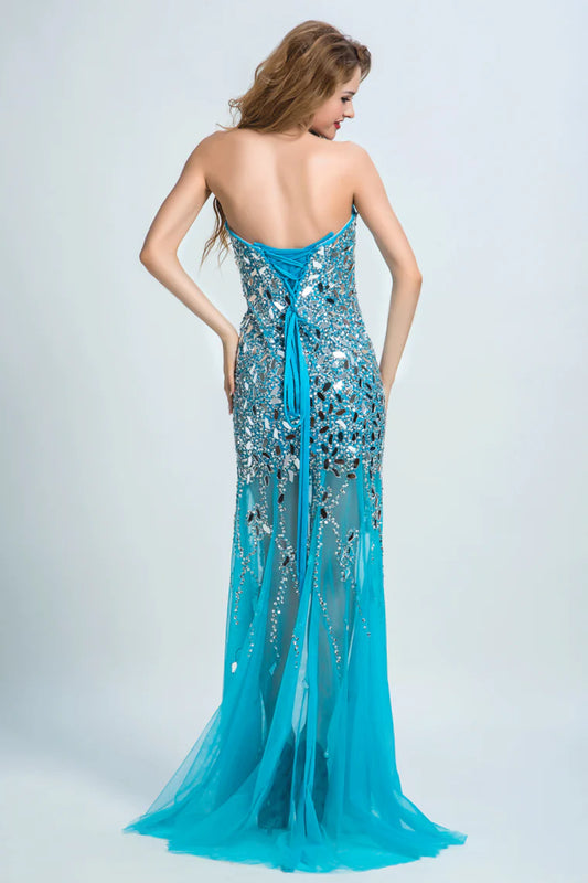 Beaded Water Diamond Mermaid Spandex Formal Cocktail Ball Dress