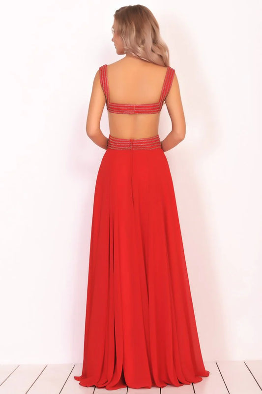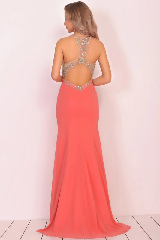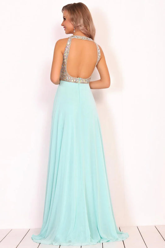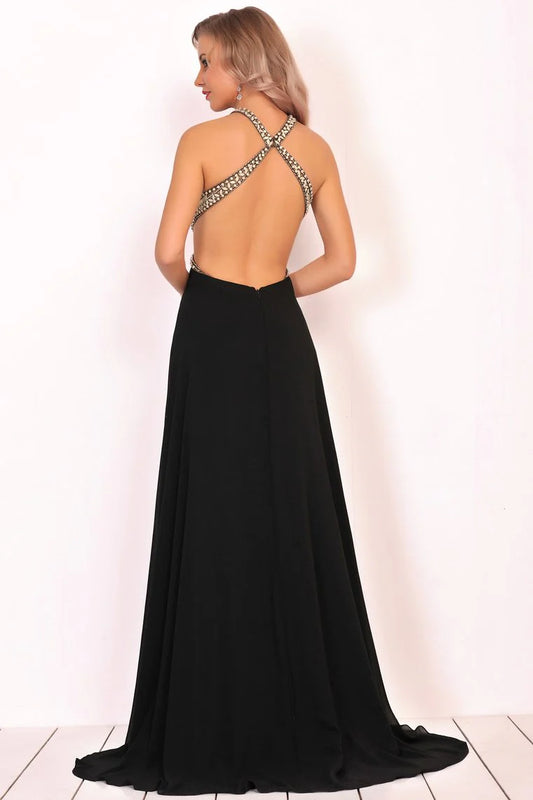 Formal Beaded Chiffon Split Backless Cocktail Ball Evening Dress