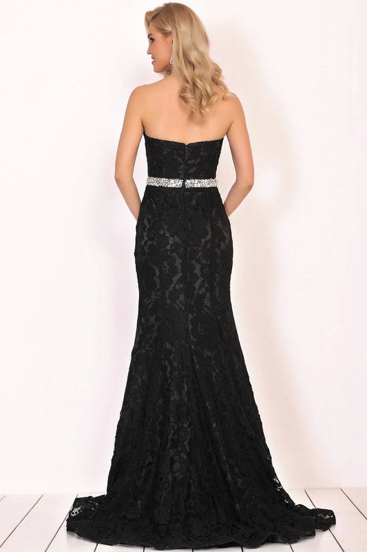 Formal Elegant High Grade Black Sweetheart Beaded Waist Line Lace Mermaid Dress